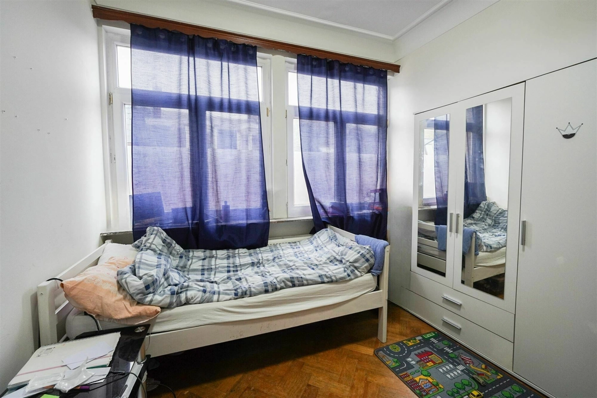 Situé juste derrière la gare de Namur, cet appartement profite d’un emplacement stratégique : à proximité immédiate des transports, des commerces, des écoles et du centre-ville Namurois. Une adresse prisée pour sa facilité de vie au quotidien. Installé au 2e étage d’un petit immeuble de trois niveaux comptant quatre appartements, il bénéficie de charges communes réduites grâce à l’absence d’ascenseur. L’agencement intérieur propose 2 chambres, un espace bureau ainsi que deux balcons (2 m² et 3 m²), parfaits pour s’offrir un peu d’air frais. L’appartement est en bon état, très bon PEB C, et dispose de compteurs séparés pour l’eau, le gaz (chaudière individuelle) et l’électricité. L’installation électrique sera conforme pour l’acte. Une cave privative complète le bien. Actuellement loué 755 €/mois hors charges, cet appartement convient aussi bien pour un investissement locatif que pour une occupation personnelle. Cerise sur le gâteau : possibilité d’acquérir un garage avec porte sectionnelle automatique en supplément pour 30.000 €. Intéressé(e) ? Contactez l’Agence Petyt au 081/44.40.22 ou par mail à l’adresse contact@agencepetyt.be pour plus d'informations ou planifier une visite !