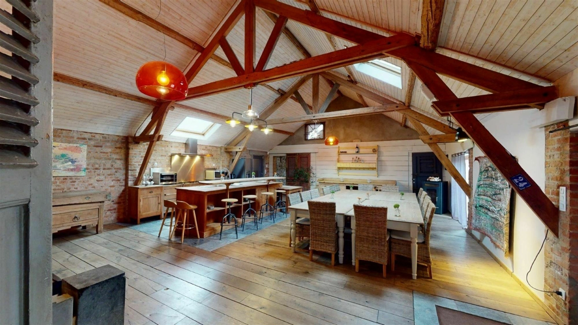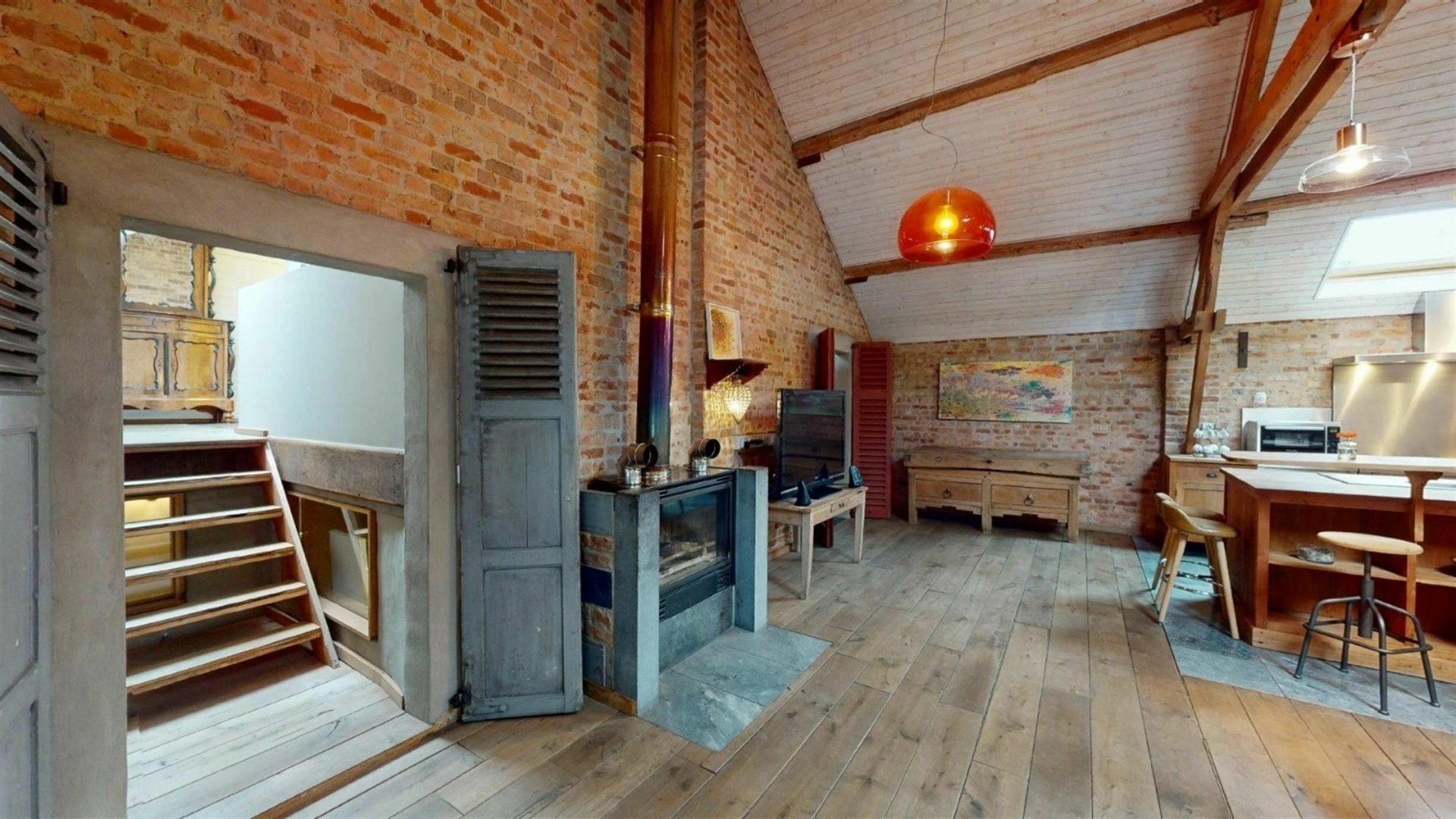 À Bois-de-Villers, à seulement quelques centaines de mètres de la nationale, cet ensemble immobilier développe un potentiel rare sur une parcelle de 34 ares. Pensé pour s’adapter à de nombreux projets, il se compose d’un loft d’exception, d’une salle polyvalente ainsi que de plusieurs entrepôts et garages, offrant un équilibre intéressant entre espace de vie, activité et stockage. Le loft, entièrement aménagé avec des matériaux de qualité, séduit immédiatement par son atmosphère chaleureuse et son caractère affirmé. Parquet, poutres apparentes, murs en briques et poêle à bois créent un cadre à la fois authentique et confortable, idéal pour recevoir une vingtaine de convives. Il bénéficie d’un PEB C et s’ouvre sur une terrasse couverte en béton, prolongeant agréablement les espaces de vie. L’ensemble du site a été entretenu avec soin, notamment grâce à une toiture entièrement refaite et isolée. Les nombreux volumes disponibles, entre la salle polyvalente, les entrepôts et les garages, laissent entrevoir une multitude de possibilités, que ce soit pour une exploitation professionnelle, du stockage ou un projet locatif. Un bien polyvalent, offrant de belles perspectives dans un environnement facilement accessible. Pour organiser une visite, contactez Mathieu de l’Agence Petyt au 0485/19.92.22 ou par mail à mathieu@agencepetyt.be