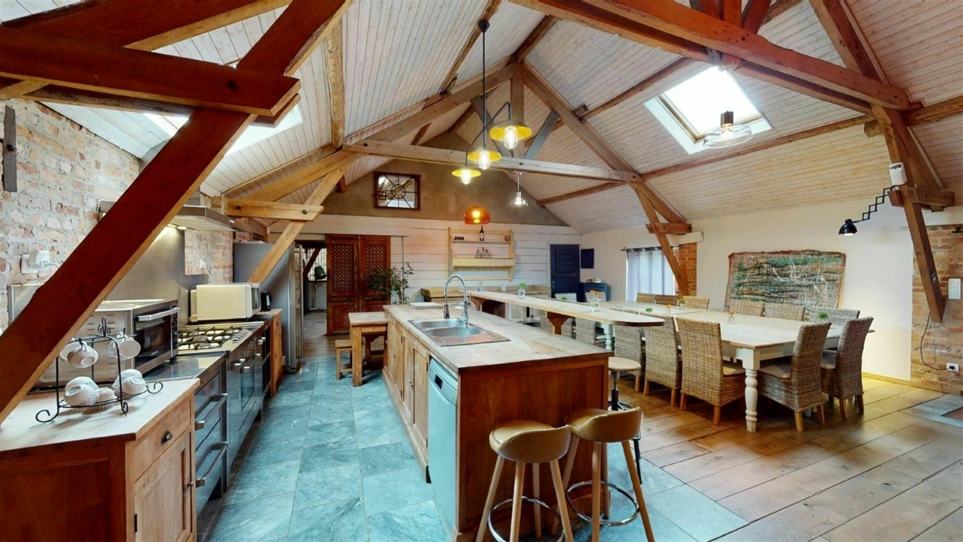 À Bois-de-Villers, à seulement quelques centaines de mètres de la nationale, cet ensemble immobilier développe un potentiel rare sur une parcelle de 34 ares. Pensé pour s’adapter à de nombreux projets, il se compose d’un loft d’exception, d’une salle polyvalente ainsi que de plusieurs entrepôts et garages, offrant un équilibre intéressant entre espace de vie, activité et stockage. Le loft, entièrement aménagé avec des matériaux de qualité, séduit immédiatement par son atmosphère chaleureuse et son caractère affirmé. Parquet, poutres apparentes, murs en briques et poêle à bois créent un cadre à la fois authentique et confortable, idéal pour recevoir une vingtaine de convives. Il bénéficie d’un PEB C et s’ouvre sur une terrasse couverte en béton, prolongeant agréablement les espaces de vie. L’ensemble du site a été entretenu avec soin, notamment grâce à une toiture entièrement refaite et isolée. Les nombreux volumes disponibles, entre la salle polyvalente, les entrepôts et les garages, laissent entrevoir une multitude de possibilités, que ce soit pour une exploitation professionnelle, du stockage ou un projet locatif. Un bien polyvalent, offrant de belles perspectives dans un environnement facilement accessible. Pour organiser une visite, contactez Mathieu de l’Agence Petyt au 0485/19.92.22 ou par mail à mathieu@agencepetyt.be