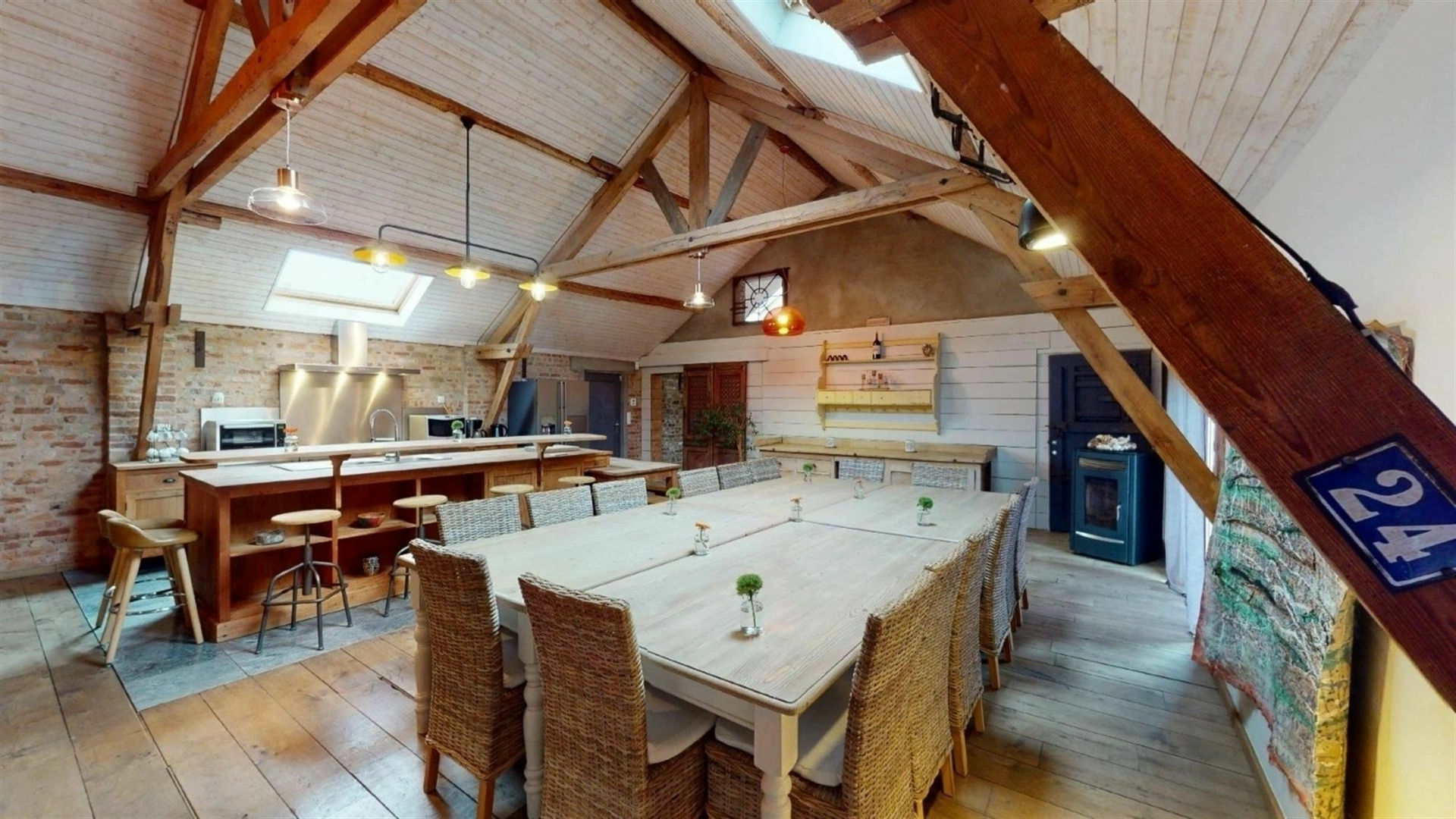 À Bois-de-Villers, à seulement quelques centaines de mètres de la nationale, cet ensemble immobilier développe un potentiel rare sur une parcelle de 34 ares. Pensé pour s’adapter à de nombreux projets, il se compose d’un loft d’exception, d’une salle polyvalente ainsi que de plusieurs entrepôts et garages, offrant un équilibre intéressant entre espace de vie, activité et stockage. Le loft, entièrement aménagé avec des matériaux de qualité, séduit immédiatement par son atmosphère chaleureuse et son caractère affirmé. Parquet, poutres apparentes, murs en briques et poêle à bois créent un cadre à la fois authentique et confortable, idéal pour recevoir une vingtaine de convives. Il bénéficie d’un PEB C et s’ouvre sur une terrasse couverte en béton, prolongeant agréablement les espaces de vie. L’ensemble du site a été entretenu avec soin, notamment grâce à une toiture entièrement refaite et isolée. Les nombreux volumes disponibles, entre la salle polyvalente, les entrepôts et les garages, laissent entrevoir une multitude de possibilités, que ce soit pour une exploitation professionnelle, du stockage ou un projet locatif. Un bien polyvalent, offrant de belles perspectives dans un environnement facilement accessible. Pour organiser une visite, contactez Mathieu de l’Agence Petyt au 0485/19.92.22 ou par mail à mathieu@agencepetyt.be