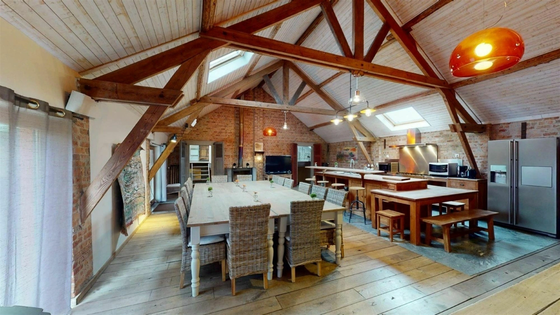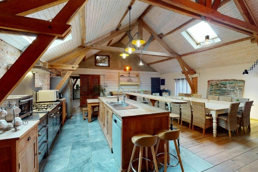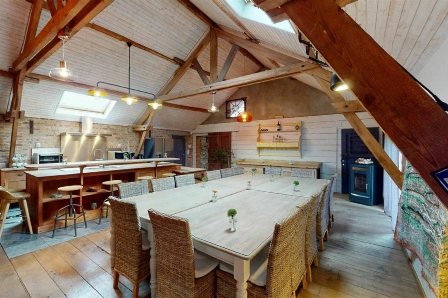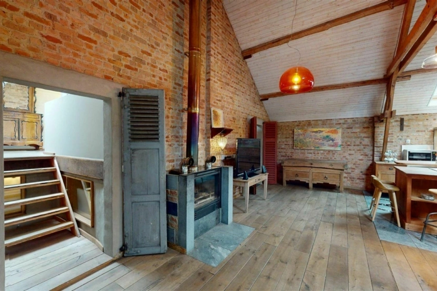 À Bois-de-Villers, à seulement quelques centaines de mètres de la nationale, cet ensemble immobilier développe un potentiel rare sur une parcelle de 34 ares. Pensé pour s’adapter à de nombreux projets, il se compose d’un loft d’exception, d’une salle polyvalente ainsi que de plusieurs entrepôts et garages, offrant un équilibre intéressant entre espace de vie, activité et stockage. Le loft, entièrement aménagé avec des matériaux de qualité, séduit immédiatement par son atmosphère chaleureuse et son caractère affirmé. Parquet, poutres apparentes, murs en briques et poêle à bois créent un cadre à la fois authentique et confortable, idéal pour recevoir une vingtaine de convives. Il bénéficie d’un PEB C et s’ouvre sur une terrasse couverte en béton, prolongeant agréablement les espaces de vie. L’ensemble du site a été entretenu avec soin, notamment grâce à une toiture entièrement refaite et isolée. Les nombreux volumes disponibles, entre la salle polyvalente, les entrepôts et les garages, laissent entrevoir une multitude de possibilités, que ce soit pour une exploitation professionnelle, du stockage ou un projet locatif. Un bien polyvalent, offrant de belles perspectives dans un environnement facilement accessible. Pour organiser une visite, contactez Mathieu de l’Agence Petyt au 0485/19.92.22 ou par mail à mathieu@agencepetyt.be