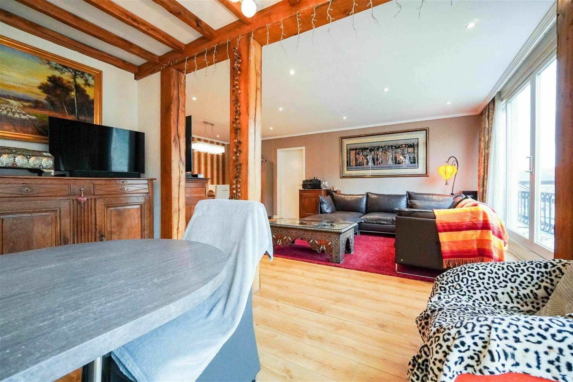 Face à la Meuse et à la majestueuse Citadelle de Dinant, ce splendide appartement situé au 3e étage développe ± 130 m² et offre un cadre de vie tout simplement remarquable. Depuis le séjour, la SAM, la cuisine ouverte et même la chambre principale, la vue s’étend largement sur les joyaux dinantais. Un panorama vivant, dont on ne se lasse jamais. Baigné de lumière naturelle grâce à ses nombreuses baies vitrées, l’appartement séduit par ses volumes généreux et son atmosphère chaleureuse. La pièce de vie, spacieuse et conviviale, a été pensée pour recevoir et profiter pleinement de chaque instant. L’ensemble a été entièrement rénové en 2013/2014 et se présente aujourd’hui dans un état irréprochable. L’installation électrique est conforme. L’espace nuit se compose de 2 chambres et d’1 bureau séparé. Deux salles de douche/bain complètent l’ensemble. La résidence est équipée d’un ascenseur, facilitant l’accès au 3e étage. Une cave, incluse dans le prix, vient compléter ce bel appartement. Un double emplacement de parking couvert est également disponible au prix de 25 000€. Un appartement lumineux, spacieux et parfaitement entretenu, qui combine confort moderne et vue d’exception. Une opportunité à découvrir sans tarder. Pour organiser une visite, contactez l’Agence Petyt au 081/44.40.22 ou par mail à contact@agencepetyt.be